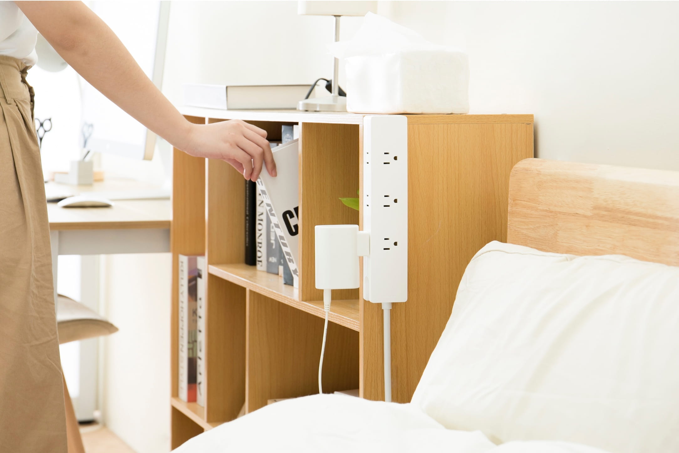 壁貼背扣設計,貼在牆上、床邊、書桌下、地板,就像是家中延伸的插座,想在哪裡用,就在哪裡用。