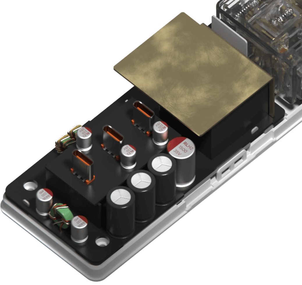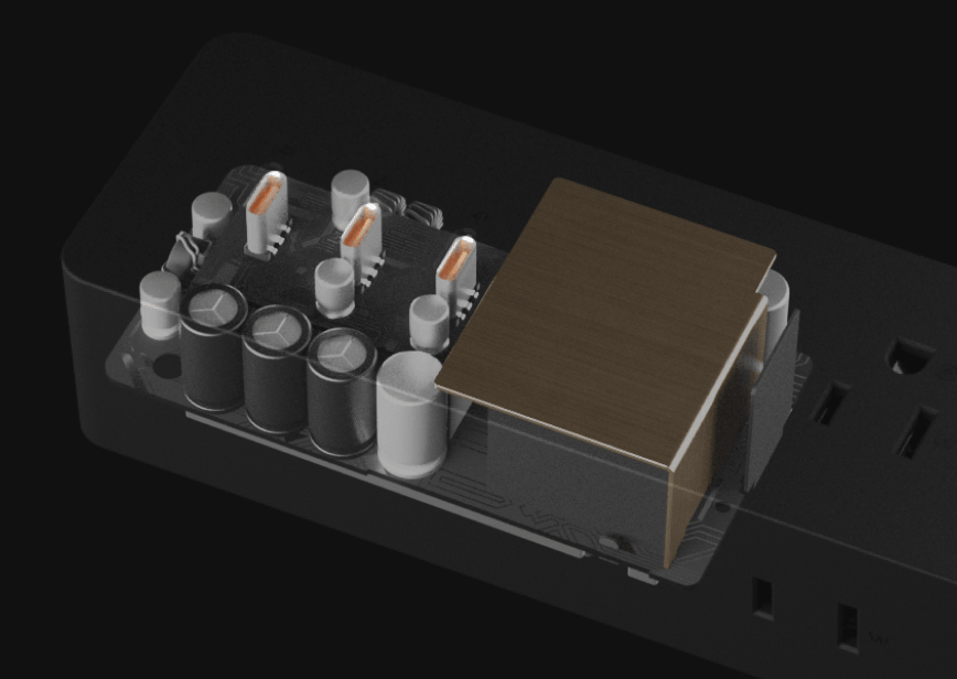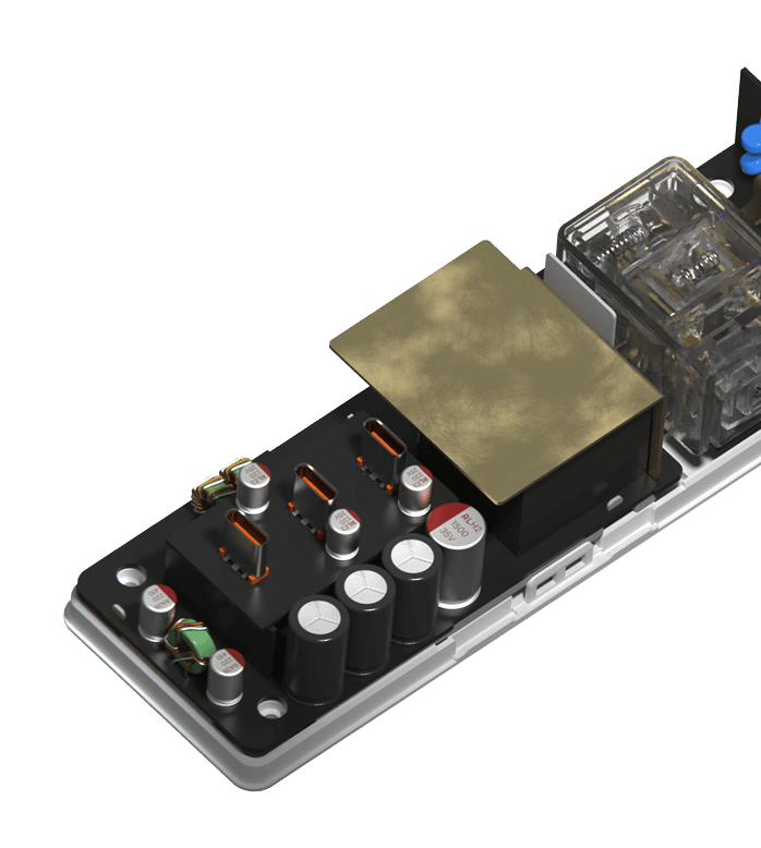 從 65W 到 100W 的效能躍升,重新設計整體結構:搭載完全獨立的電源迴路提升電力穩定度、全新 AC 插座結構以自動安全蓋加強物理防護,為延長線奠定新的用電安全與高效基準。