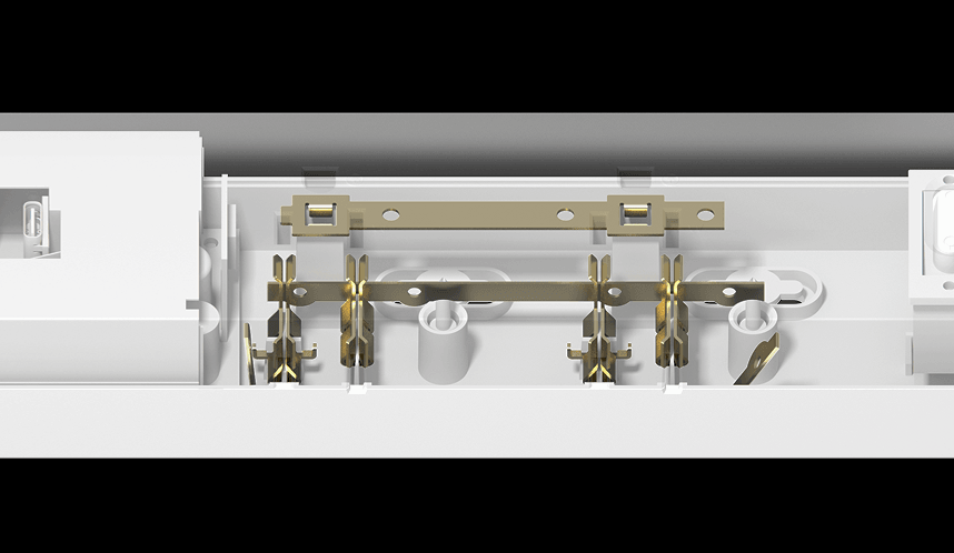 主動隔絕防護,全新的主動式機械閥門模組,為居家安全設立全新標準,隱藏式設計,透過物理結構閥門,插拔自動開合,從源頭杜絕走火風險。