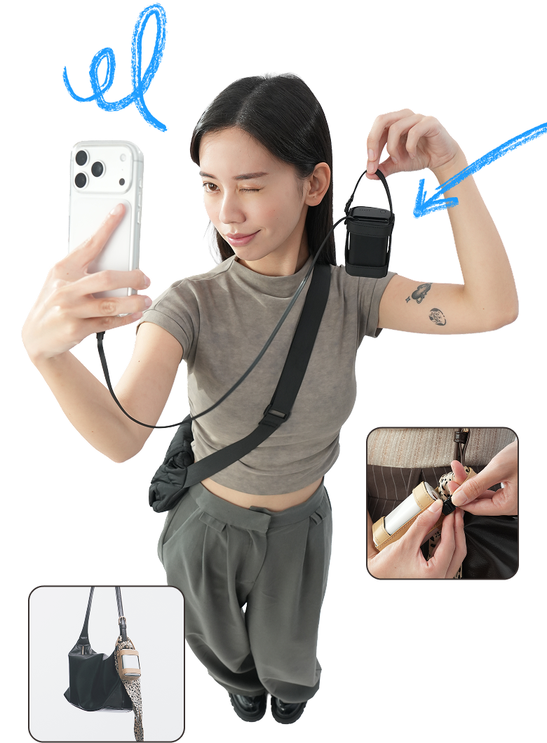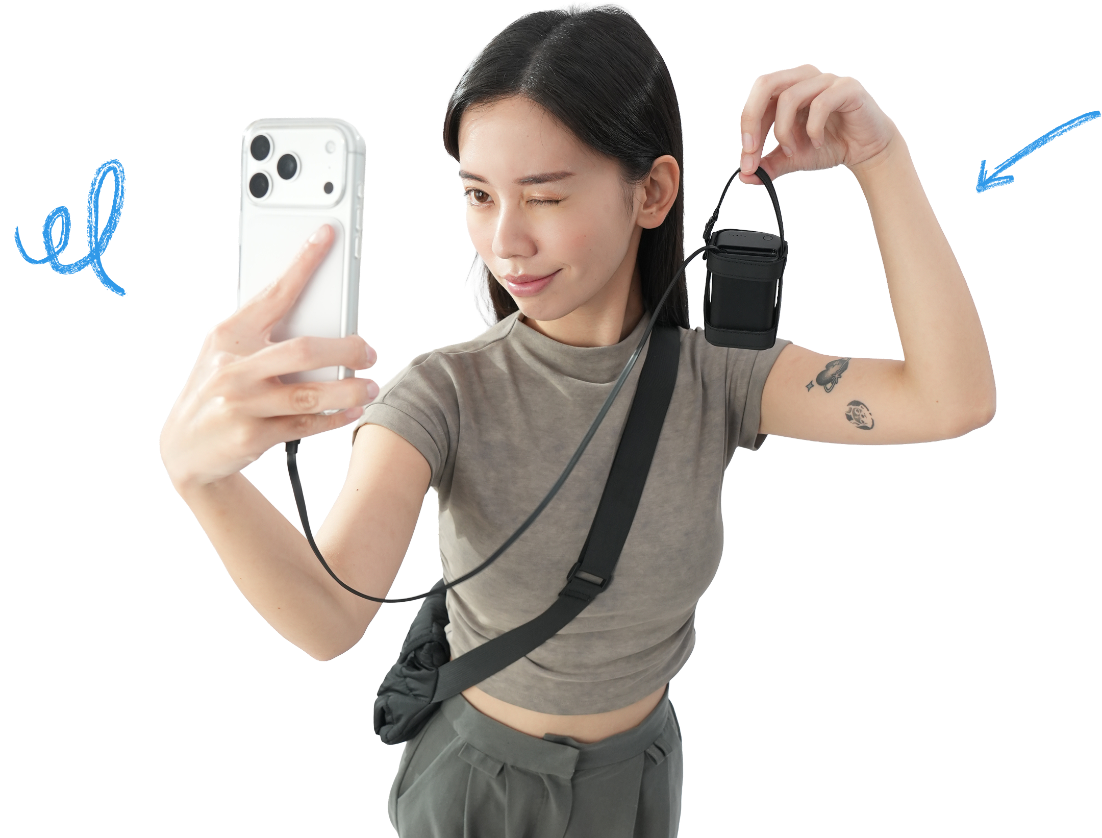 我們不只想讓行動電源變小、變輕,更想讓你在使用時,感覺不到它的存在。掛在包包上,輕鬆拉線充電,你手中只剩手機的重量,也只剩自由的感覺。