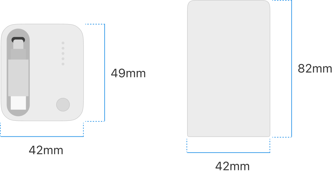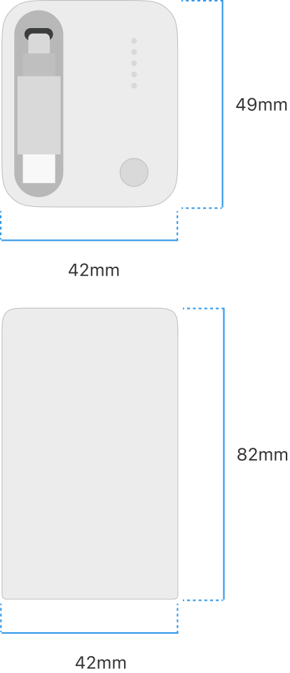 不到一張信用卡大小,擁有 10000mAh 大容量,相比同電量規格行動電源,尺寸更小,重量更輕,無論手拿或放包包,都輕盈不占空間,攜帶更有餘裕。